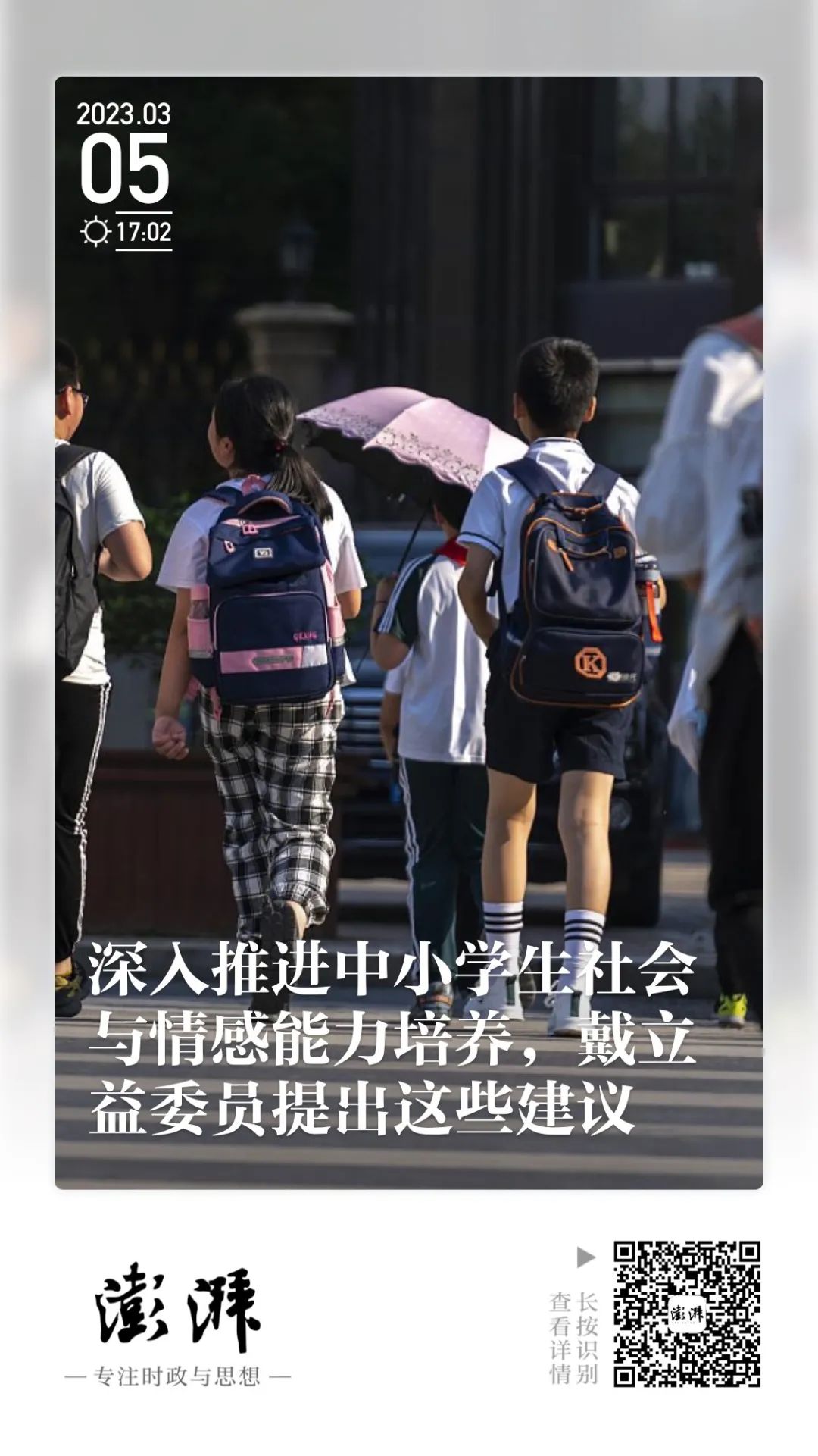 澎湃新闻丨深入推进中小学生社会与情感能力培养,戴立益委员提出这些建议