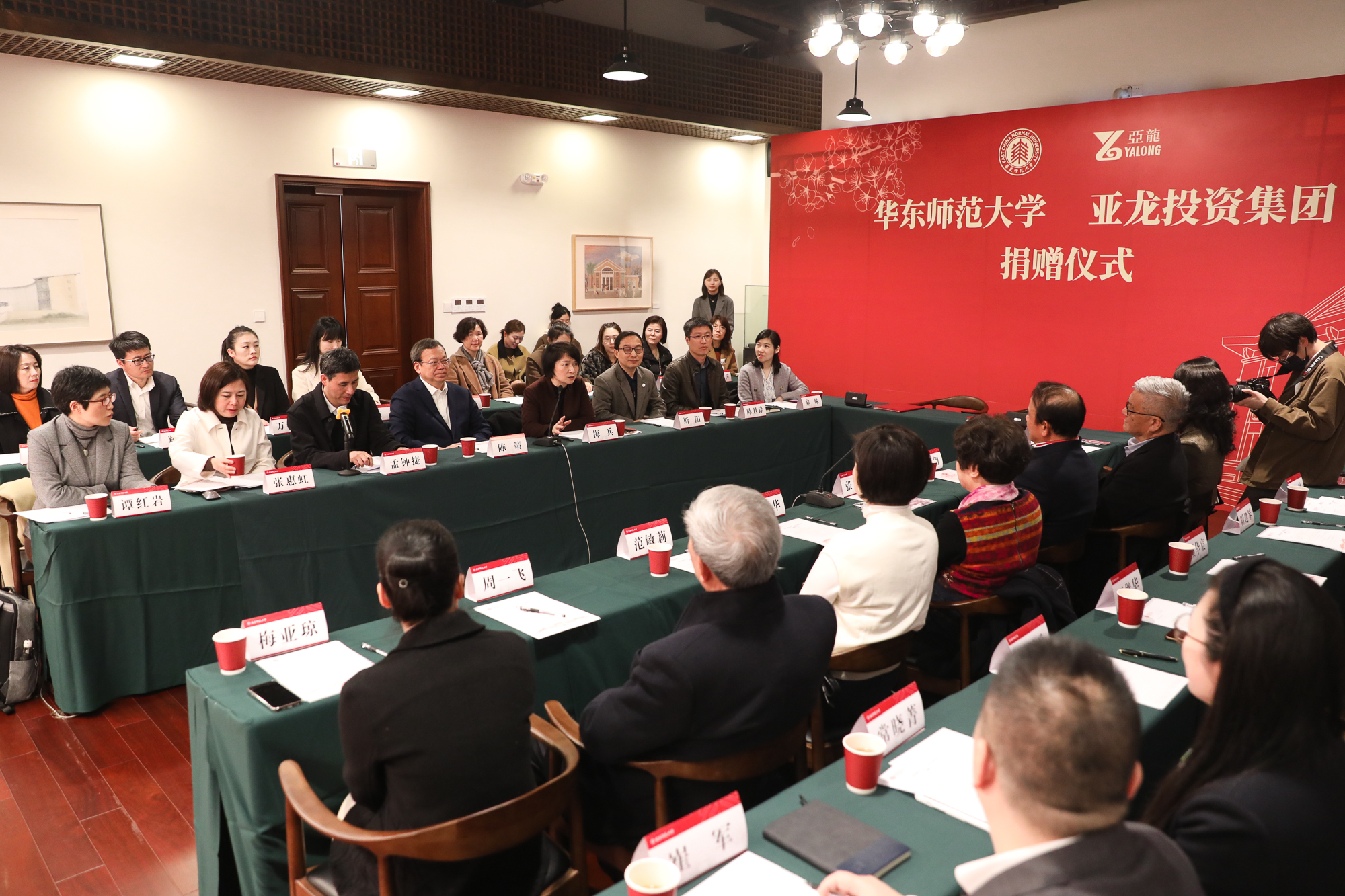 在捐赠仪式前,华东师大副校长雷启立就捐赠工作与亚龙投资集团一行作了详细沟通与交流。