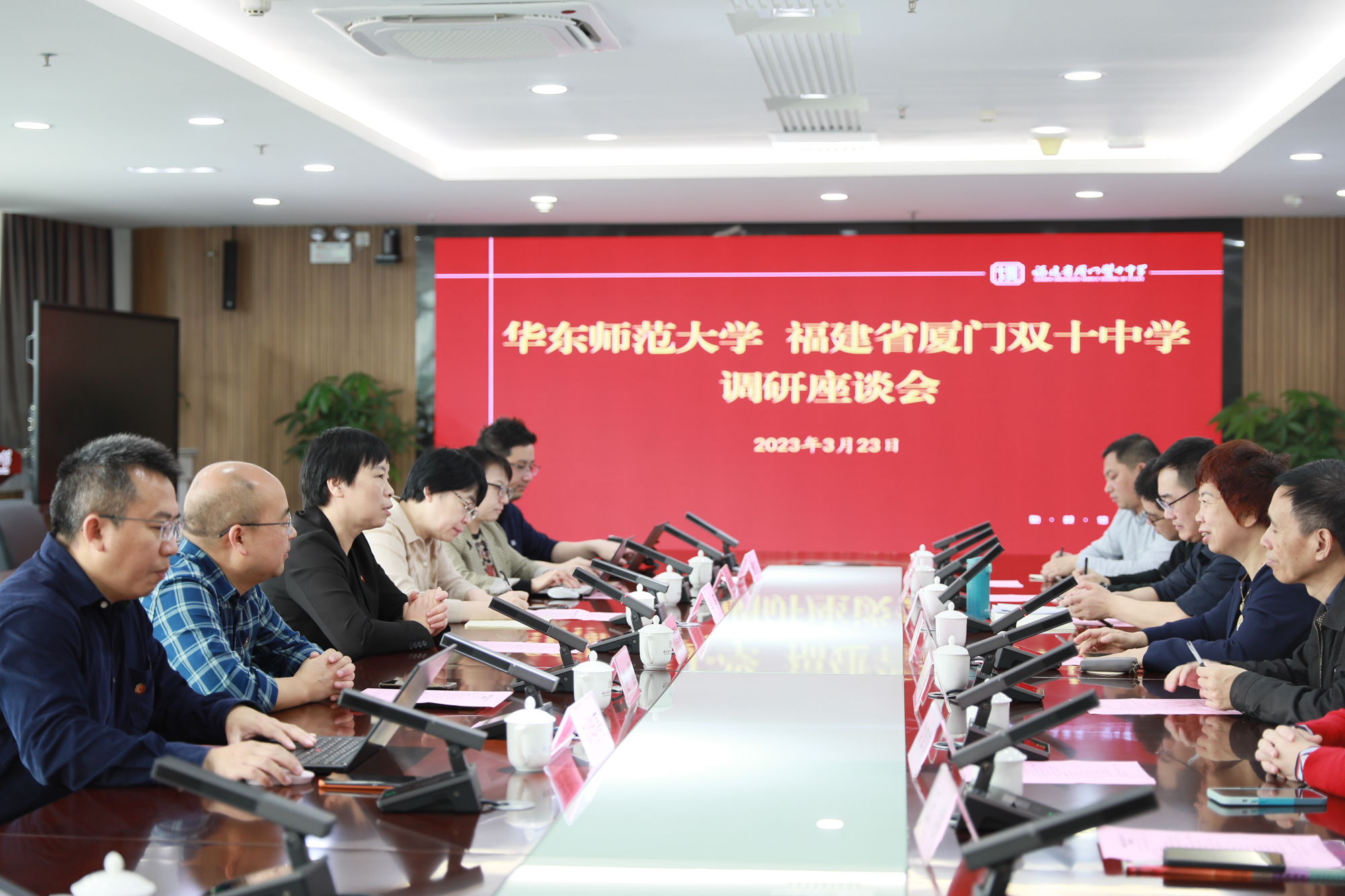 在华师希平双语学校,调研组参访校园,并与全国政协委员、厦门恒兴集团董事长柯希平、恒兴教商投资有限公司董事长柯兰兰、华师希平学校总校长刘伟等进行了座谈,围绕学生实习实践、校园招聘等事宜进行了交流。柯希平介绍了集团投资办教育的初心梦想,期待华东师大学生到学校实习就业、成长发展。