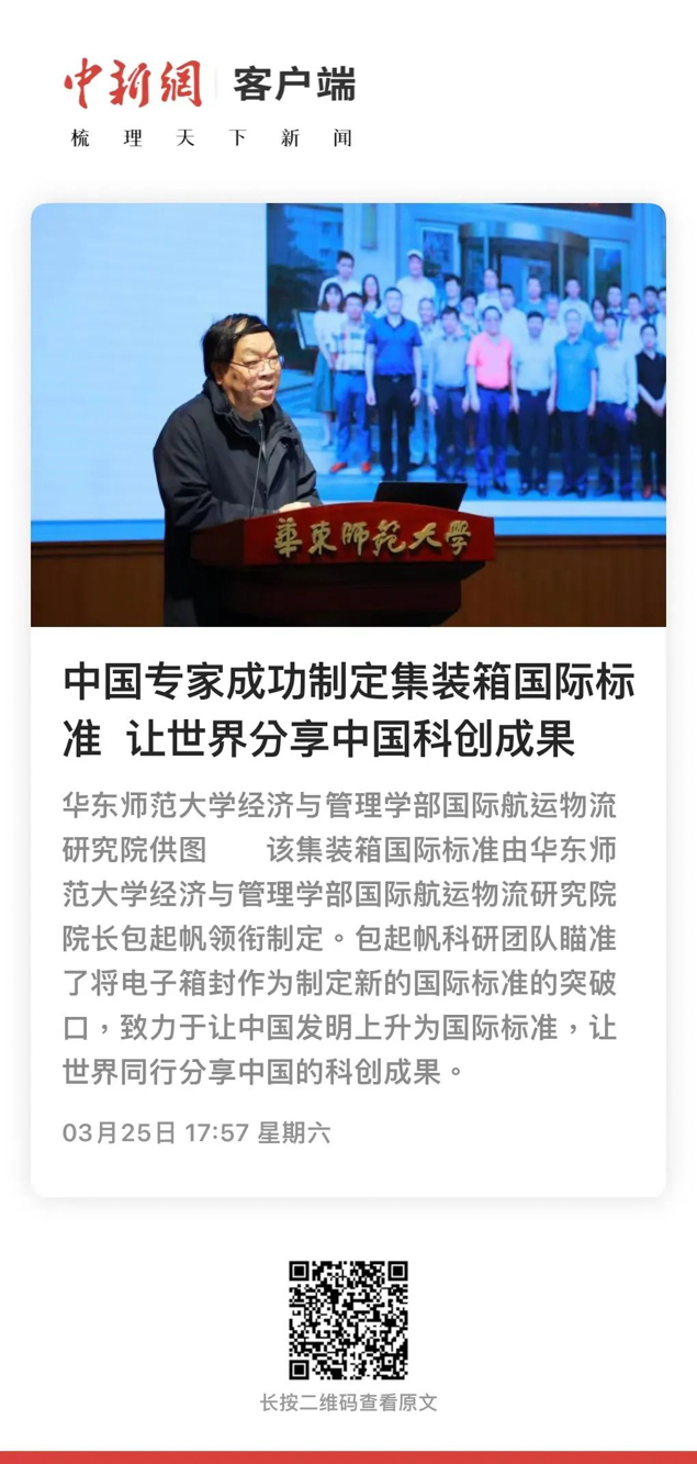 华东师大校长、中国工程院院士钱旭红在会上表示,华东师大依托相关学科优势,高度重视国际标准制定工作。此项标准的发布不仅是国际标准制定领域的一件大事,同时也是华东师大服务国家战略和社会经济发展取得实质性成果的重要标志。包起帆同志担任华东师大国际航运物流研究院院长以来,持续发挥劳模精神,勇于创新,在航运物流领域积极耕耘,搭建跨越校内外的产学研平台,联合多学科专家学者,融合多方面力量,先后开展系列科学研究,并积极推动研究成果的实际应用。钱旭红表示,学校将一如既往的支持包起帆团队开展工作,也期待包起帆同志继续带领团队开拓创新,再创佳绩。