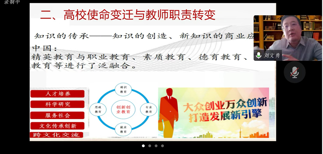 教育部创新创业指导委员会委员、辽宁大学经济学院院长、吉林大学创新创业研究院副院长李政教授从“创新”“创业”“创新创业教育”三个方面对双创研究前沿进行梳理,从道路与理论的高度,阐释“创新”的研究趋向,在多样研究角度中凸显“创业”的时代意义,采用对照视角,总结德国、美国、以色列可资借鉴的双创教育经验,提供了有益的研究启迪。他在培训中特别强调,随着教育情境、对象和视角的变化,教师需要树立数字意识,借助数字技术,采用整体系统的思维方法,实现知识精准供给与真实实践体验的紧密融合。