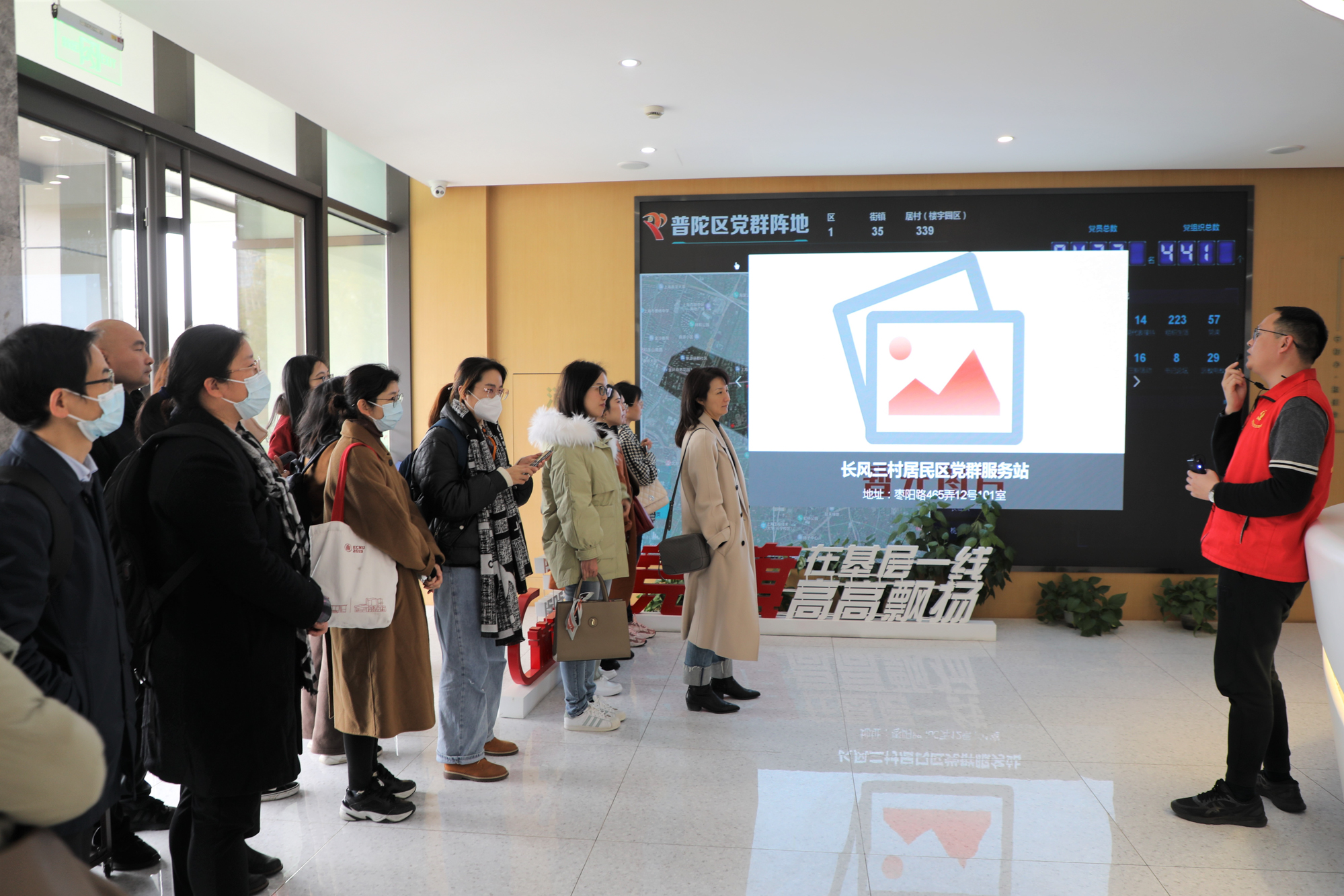 3月24日下午,培训班学员赴普陀区党群服务中心和普陀区万有引力新业态新就业群体党群服务中心参观学习。普陀区党群服务中心是一个集引领、管理、服务、示范、联动等功能于一体的综合型党群阵地。通过参观,学员们感受苏州河的变迁,回顾普陀区的发展历程,也在点亮“微心愿”和各种便民服务中,感受到了中心在为社区居民办实事中的巧思和用心。