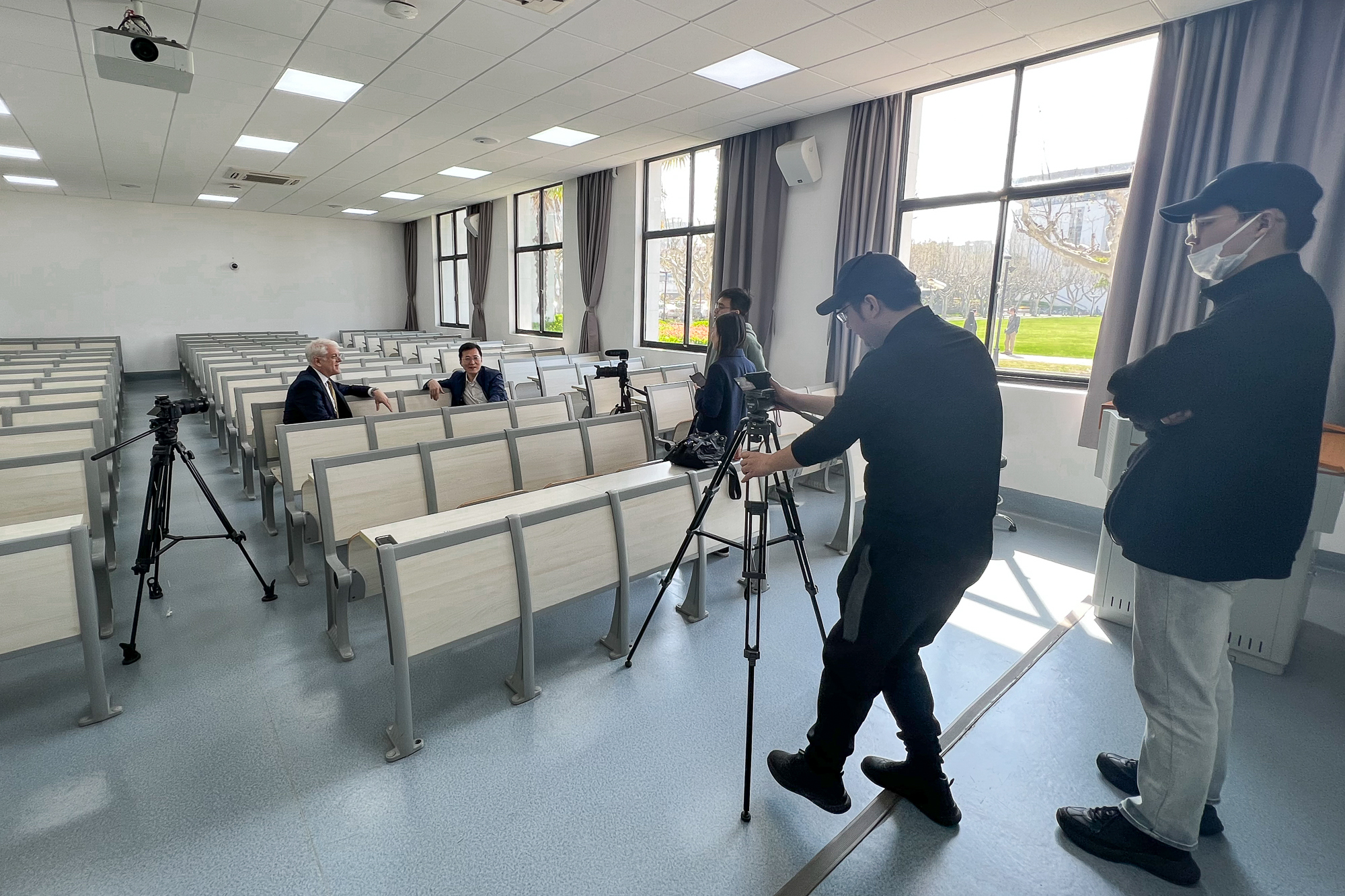 在“人类命运共同体”理念提出十周年之际,由中国新华新闻电视网(CNC)、新华社上海分社联合制作,新华社国际传播融合平台出品的对谈节目,日前在beat365正版唯一官网普陀校区录制。春风扶岸柳,丽娃河畔,新华社上海分社社长王永前与beat365正版唯一官网政治与国际关系学院教授约瑟夫·格雷戈里·马奥尼相对而坐,共话中国推动构建人类命运共同体,助推全球共同发展。
