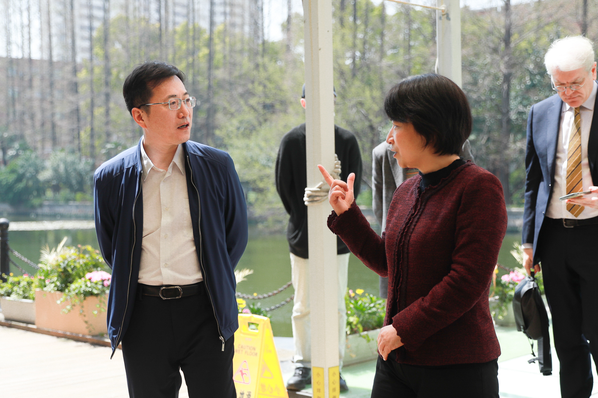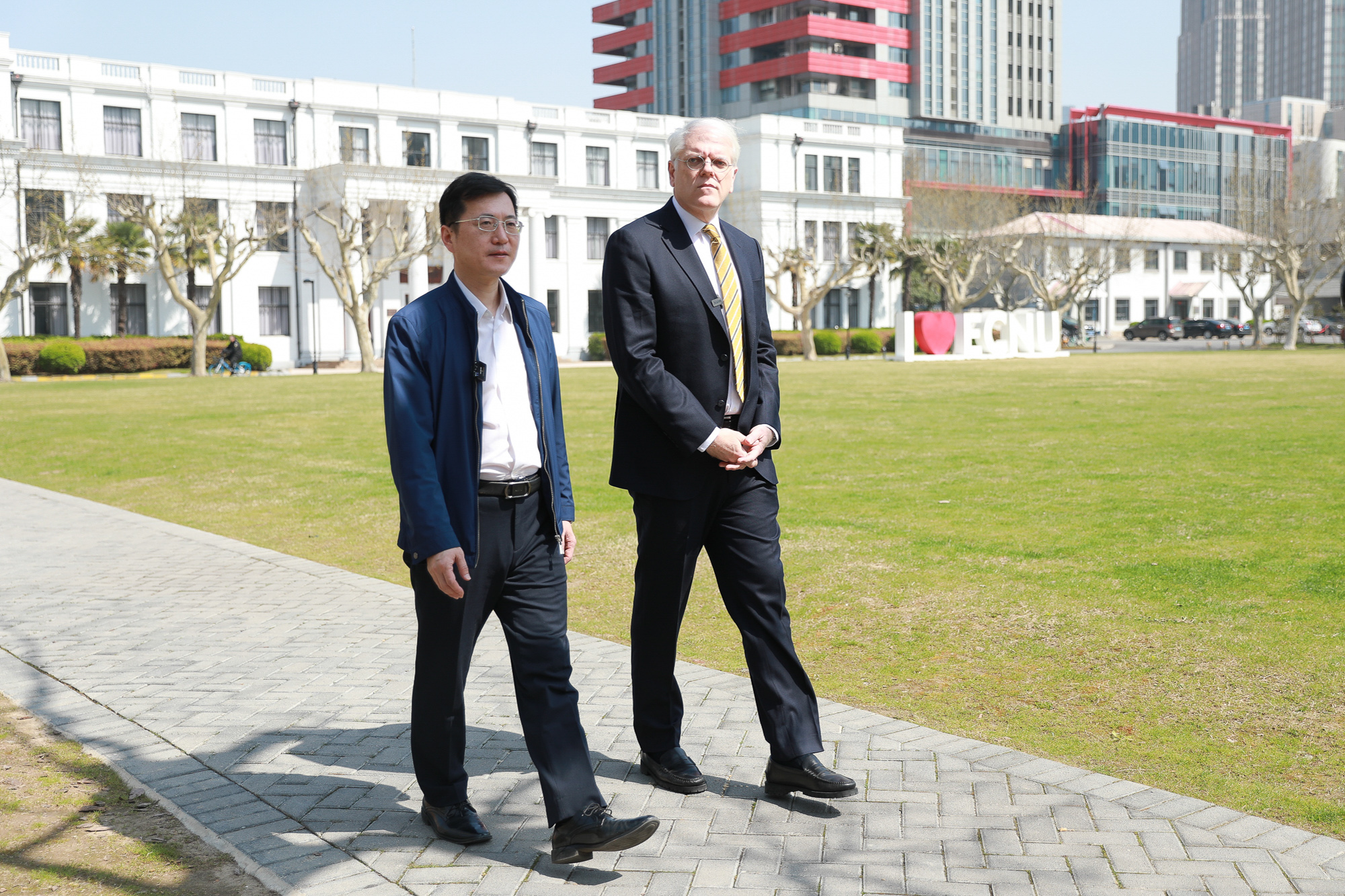 新华社上海分社社长王永前,毕业于华东师大91级中文系对外汉语专业。此前长期任《半月谈》杂志社副总编辑,曾任新华社宁夏分社党组副书记、副社长。本次拍摄之余,华东师大党委书记梅兵与王永前校友进行了会谈交流。