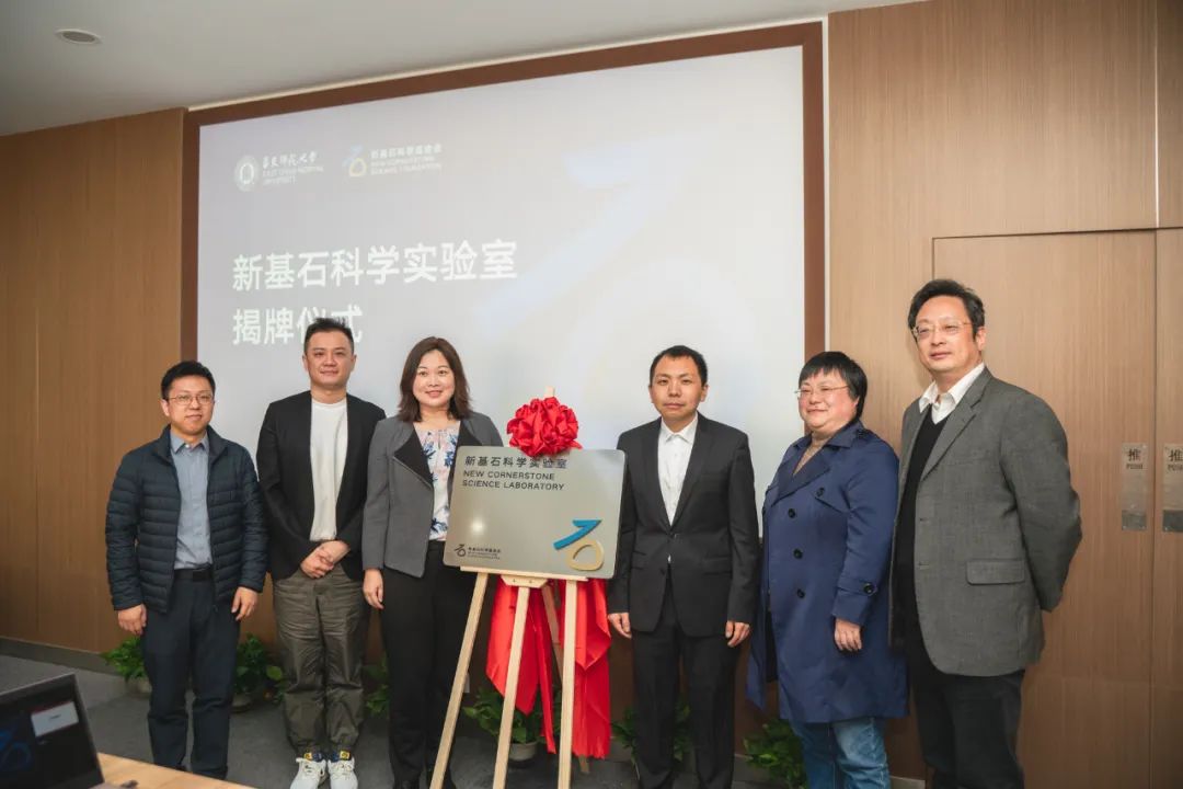 beat365正版唯一官网副校长施国跃,数学科学学院教授、新基石研究员刘钢,新基石科学基金会副秘书长郑素萍等共同为新基石科学实验室揭牌。