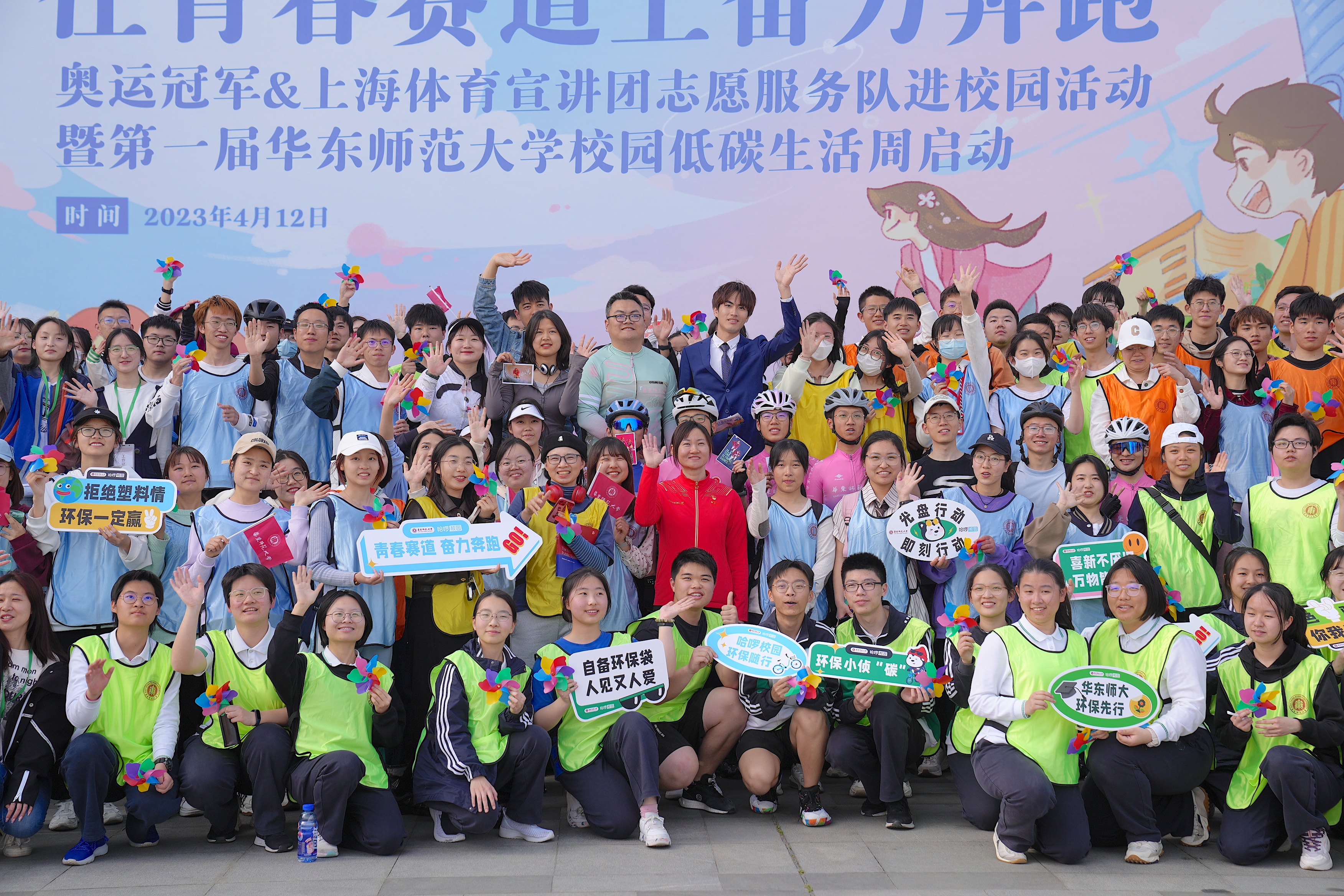 上海市体育局与beat365正版唯一官网共同主办的“在青春赛道上奋力奔跑——奥运冠军&上海体育宣讲团志愿服务队进校园活动”4月12日在华东师大闵行校区举行。党的二十大代表、奥运冠军钟天使进校宣讲,与师大学子一同学习党的二十大精神,并与百人骑行团环骑师大校园,感受师大春意。