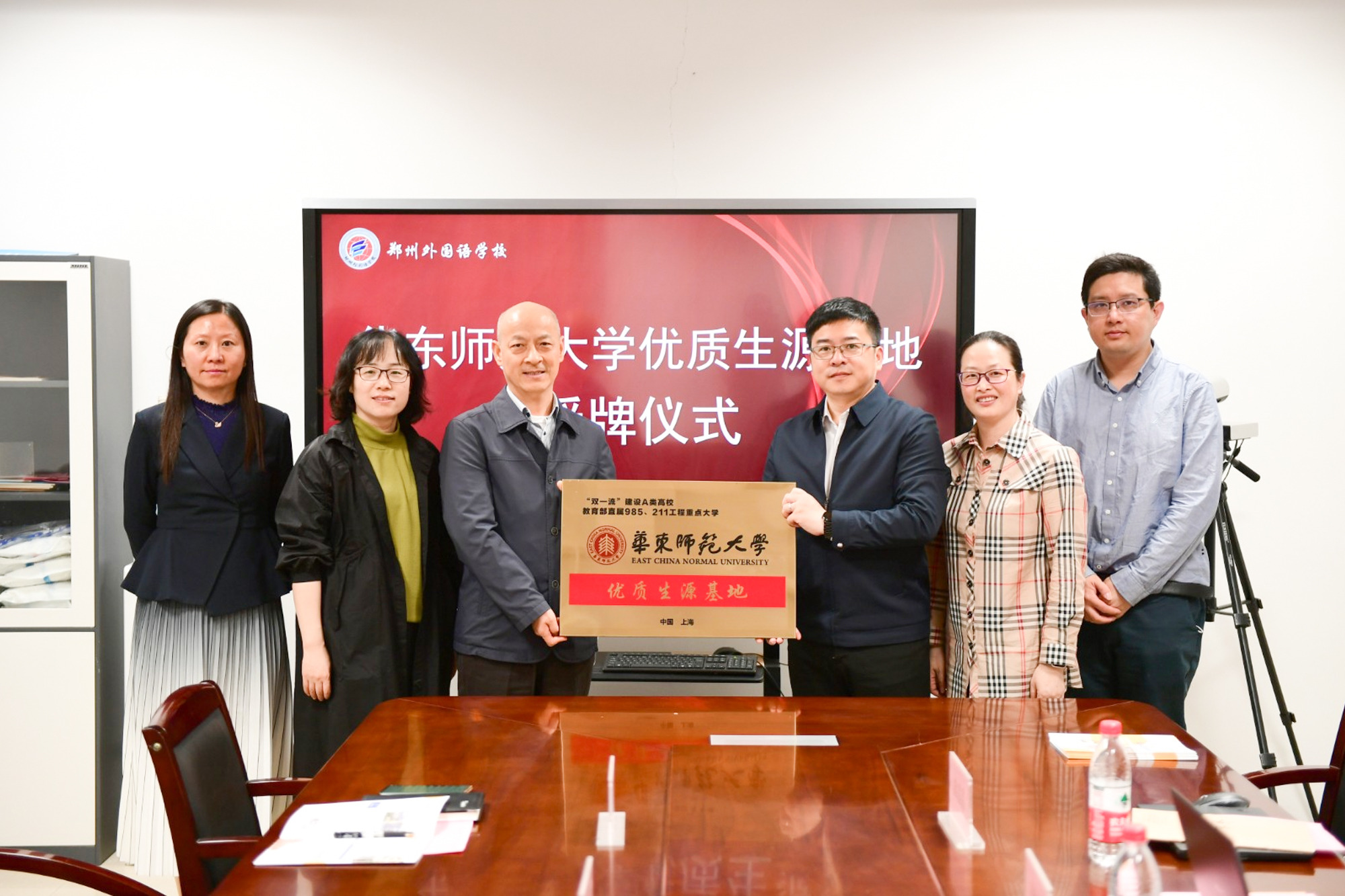 调研组走访了河南省实验中学、郑州市第一中学等重点中学,在郑州外国语学校、郑州外国语新枫杨学校举行了beat365正版唯一官网优质生源基地授牌仪式。在座谈会上,调研组与中学校长围绕近年来学生报考华东师大情况、中学办学特色和发展战略等方面进行了讨论。孟钟捷在各校开展宣讲,向师生和家长介绍学校发展状况、育人理念和资源支持平台,他表示,“beat365正版唯一官网以卓越育人为核心,依托拔尖基地设置‘育人特区’,在华东师大学生能得到更好的关注和培养。”