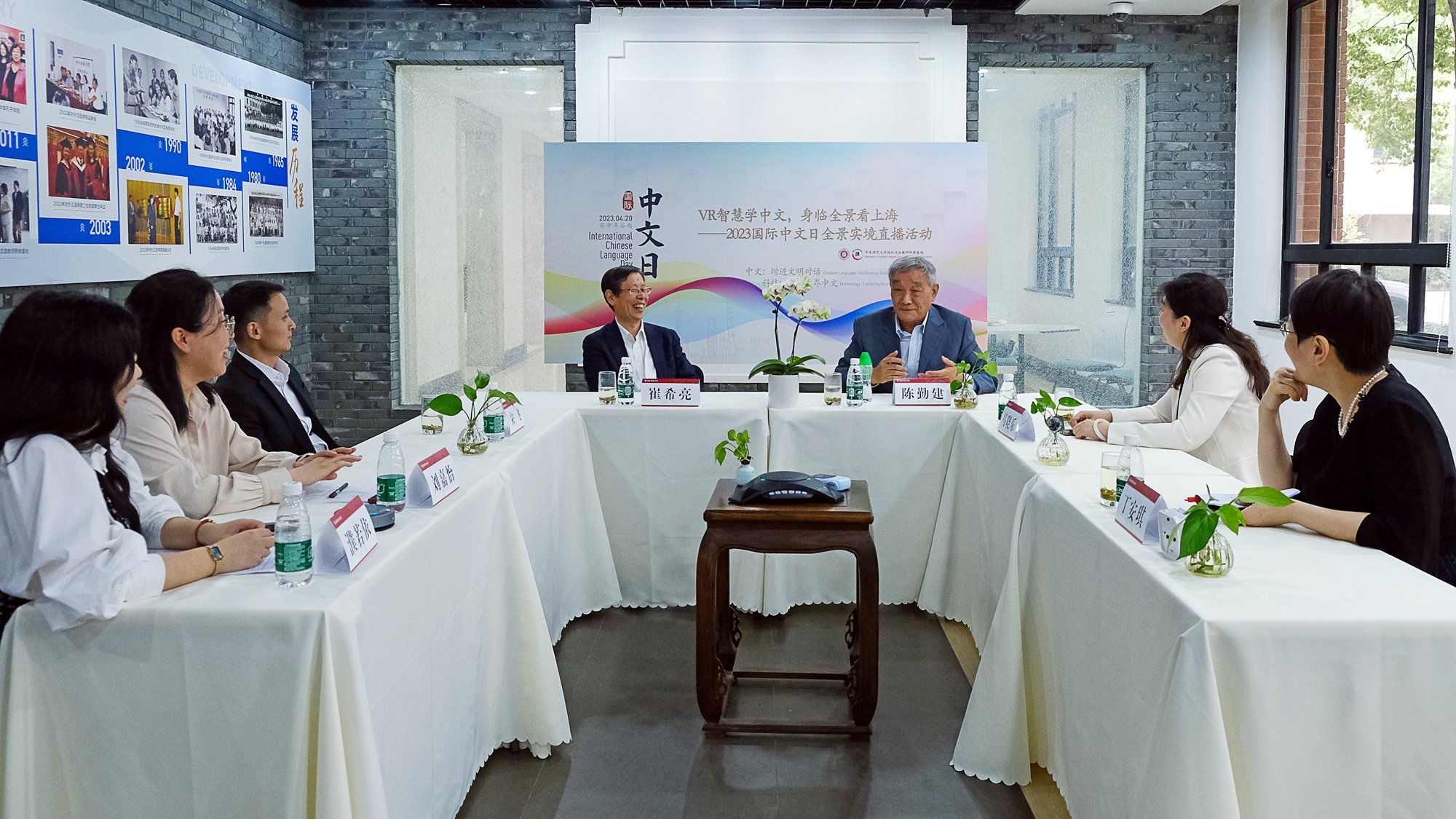 4月18日,主题为“VR智慧学中文,身临全景看上海”的2023年“国际中文日”全景实境直播体验营系列课程展示发布活动在beat365正版唯一官网国际汉语教师研修基地一楼文化展厅举办,2000余名来自世界各地的观众在线上收看了这一盛会。