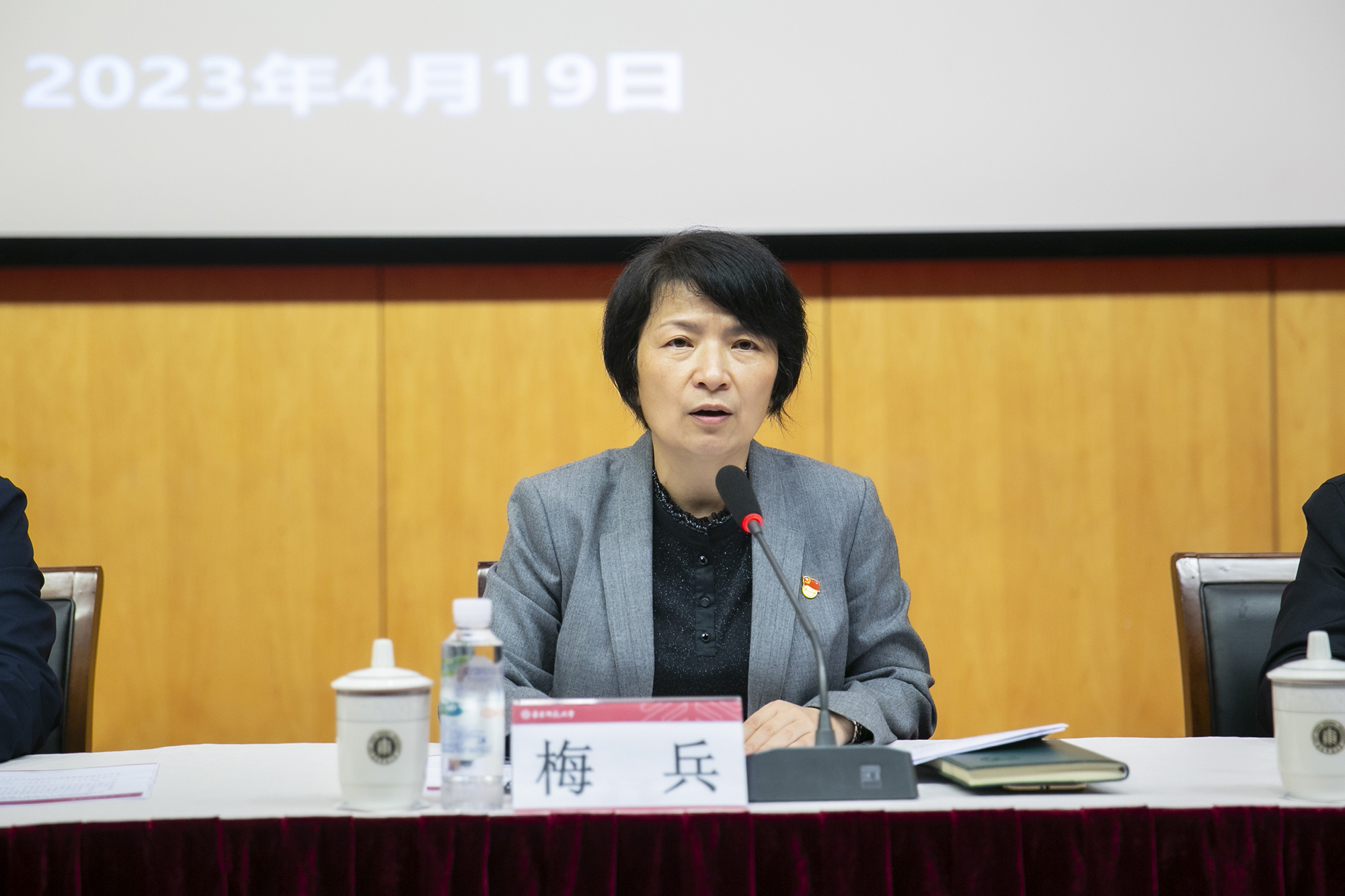 梅兵代表学校对教育部直属高校主题教育第六巡回指导组到校指导表示欢迎。她在动员讲话中指出,在全党深入开展学习贯彻习近平新时代中国特色社会主义思想主题教育,是党中央为全面贯彻党的二十大精神、动员全党同志为完成党的中心任务而团结奋斗所作的重大部署,是深入推进新时代党的建设新的伟大工程的重大部署,意义重大、影响深远。学校将按照党中央和教育部党组的部署要求,在指导组的指导下,聚焦主题教育的根本任务,真抓实干、狠抓落实,务求取得扎扎实实的成效,坚定追求卓越、勇敢改革创新,全力推动学校党的建设和事业发展在新发展阶段实现新的跃升,为加快建设教育强国、全面建设社会主义现代化国家、全面推进中华民族伟大复兴贡献师大力量。