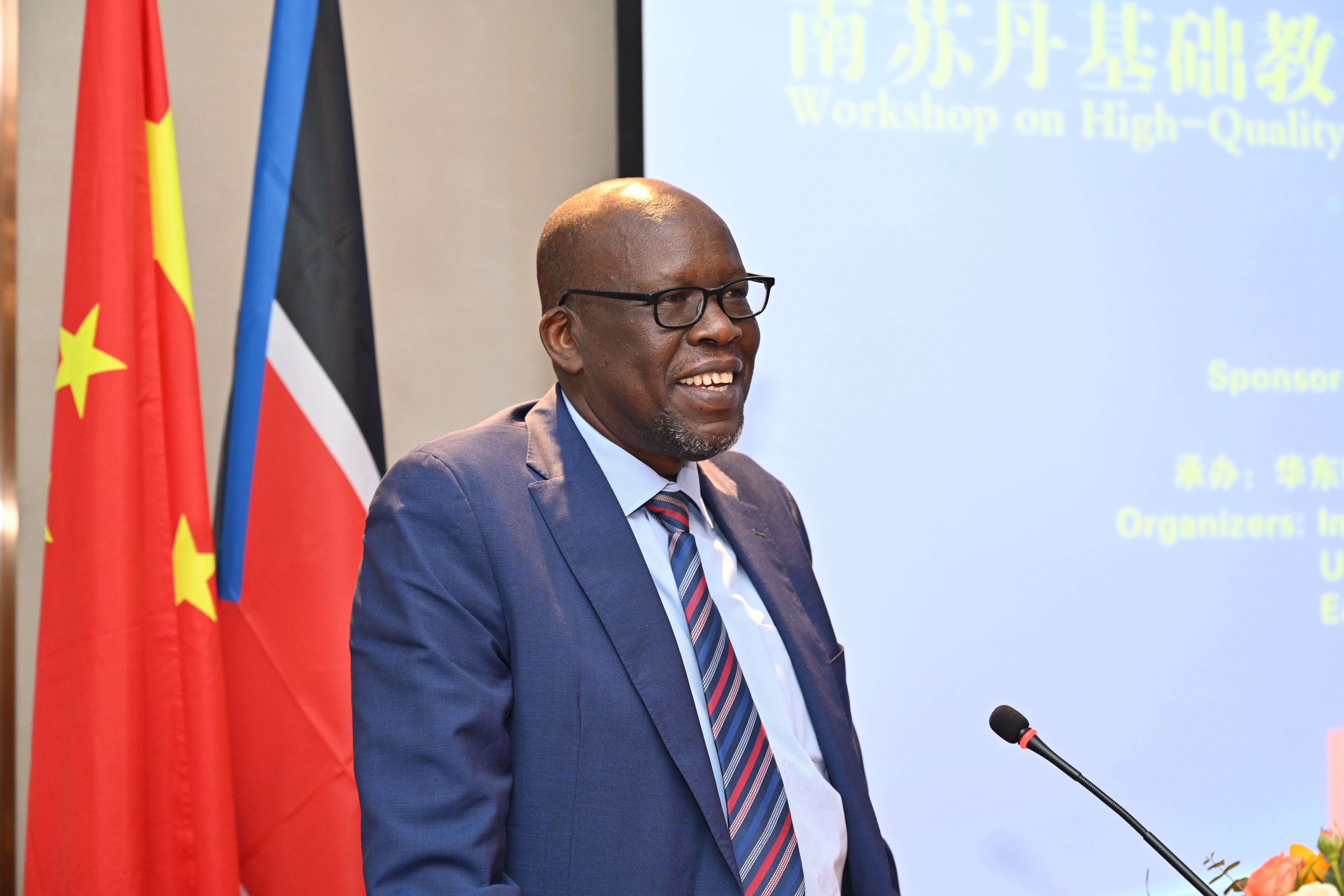 南苏丹基础教育与指导部次长Kuyok Abol Kuyok博士作为学员代表感谢中国政府和人民,感谢华东师大承办此次研修班。他指出,自2005年南苏丹获得和平以来,其教育事业取得了显著进步,学生入学人数从30万增加到了230万,并在基础教育方面实现了男女平等。然而,南苏丹教育事业也仍然面临着儿童失学、教师培训不足和教材匮乏等诸多问题。鉴此,南苏丹政府在2022年9月举办的联合国教育改革峰会上承诺进行教育改革,加快完成有质量的融合教育,2023年又宣布实施免费的9年制义务教育。Kuyok次长表示,习近平主席在2023年南非约翰内斯堡举行的“中非领导人对话”中勾画了“中非人才培养合作计划”。这个计划会同中国“一带一路”倡议,使得南苏丹在加深与中国友谊的同时,必将在以教育为核心的社会经济发展中取得巨大成就。此次研讨班的举行,必将在南苏丹教育界产生深远影响。