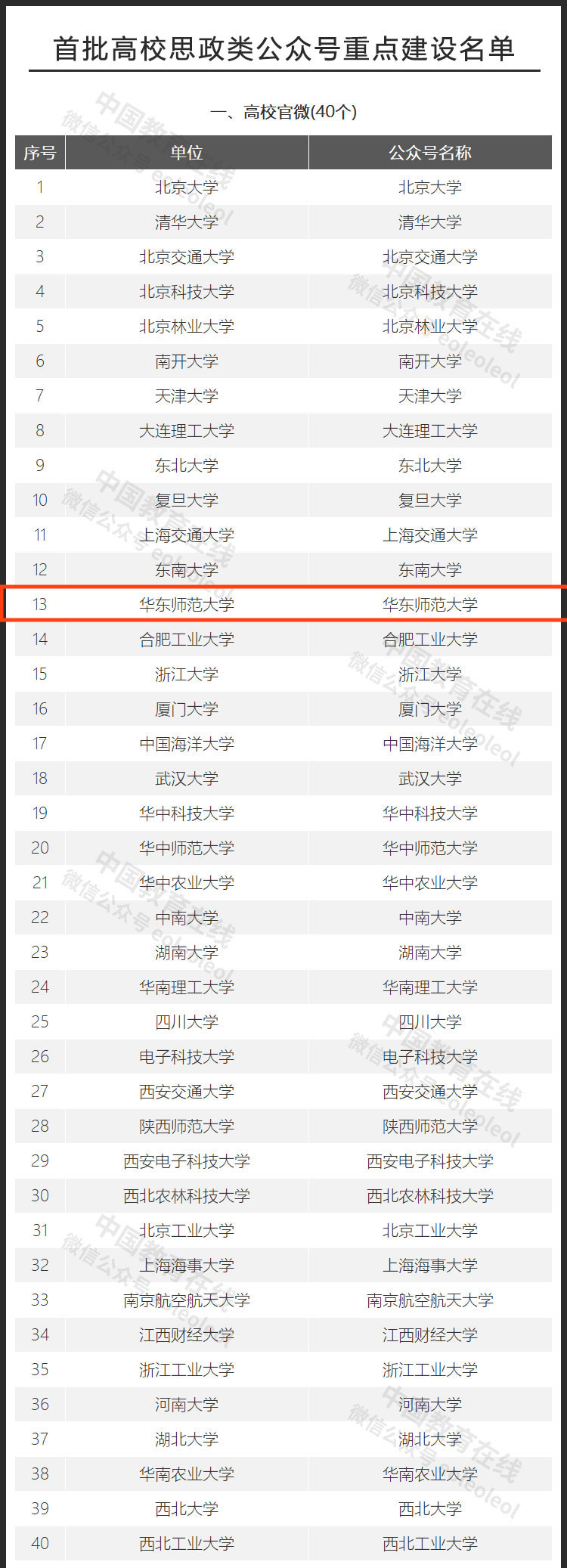 首批高校思政类公众号重点建设名单近日公布,在全国40个“高校官微”重点建设名单中,beat365正版唯一官网官方微信公众号榜上有名。重点建设一批优质高校思政类公众号工作由中央宣传部、中央网信办、教育部、共青团中央联合...