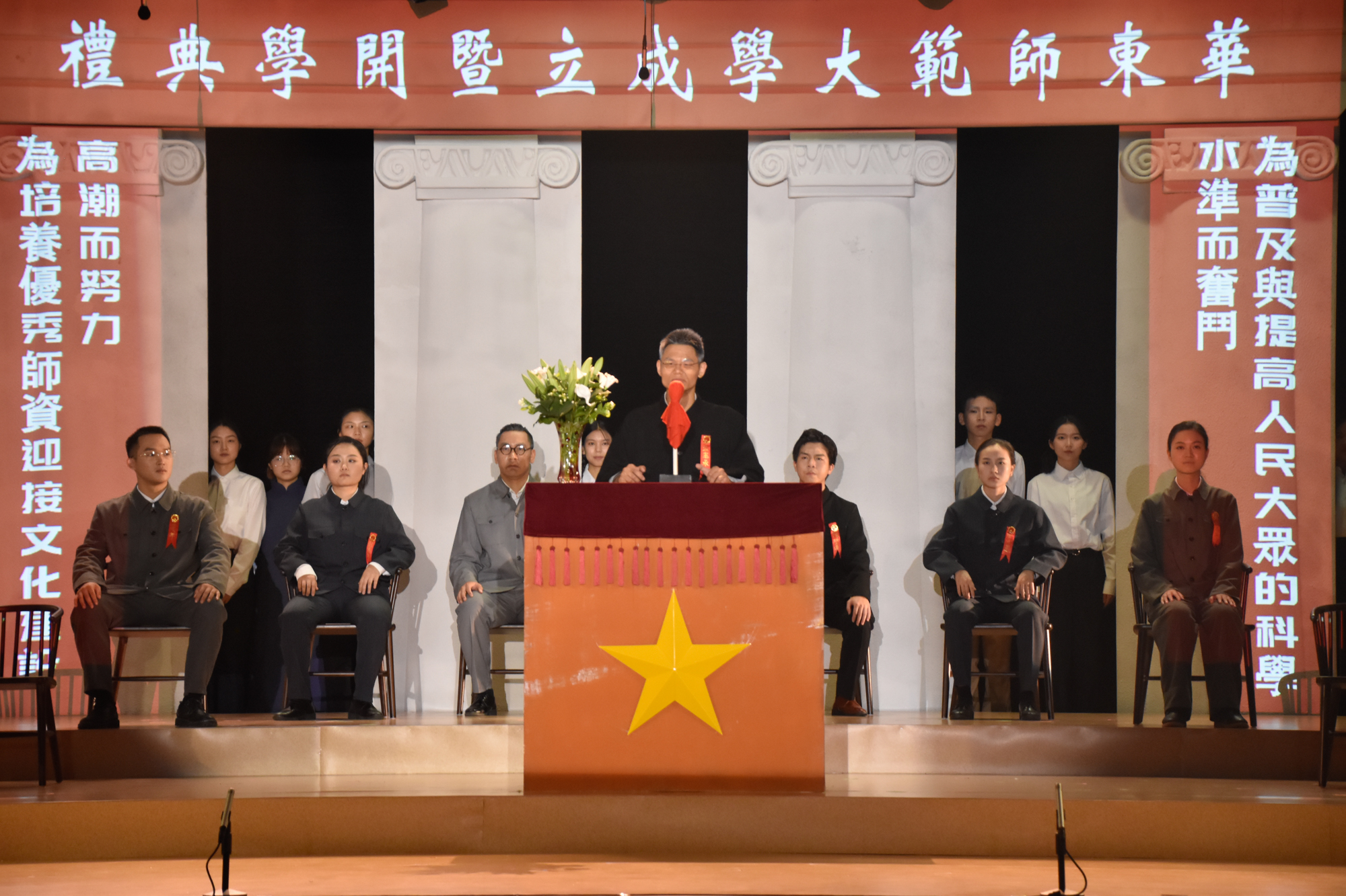 “各位教师、学生,欢迎大家从不同的城市、不同的学堂,齐聚于此,共同见证新中国第一所社会主义师范大学的诞生!”在beat365正版唯一官网70周年校庆倒计时一周的当天,1951年10月16日beat365正版唯一官网成立暨开学典礼的情景在华东师大思群堂实地再现。《孟宪承》剧照:beat365正版唯一官网成立暨开学典礼的情景 10月9日晚,跨越3年、经3届师生校友演职团队接力打磨,beat365正版唯一官网校园大师剧《孟宪承》校庆70周年专场成功上演,并通过网络平...