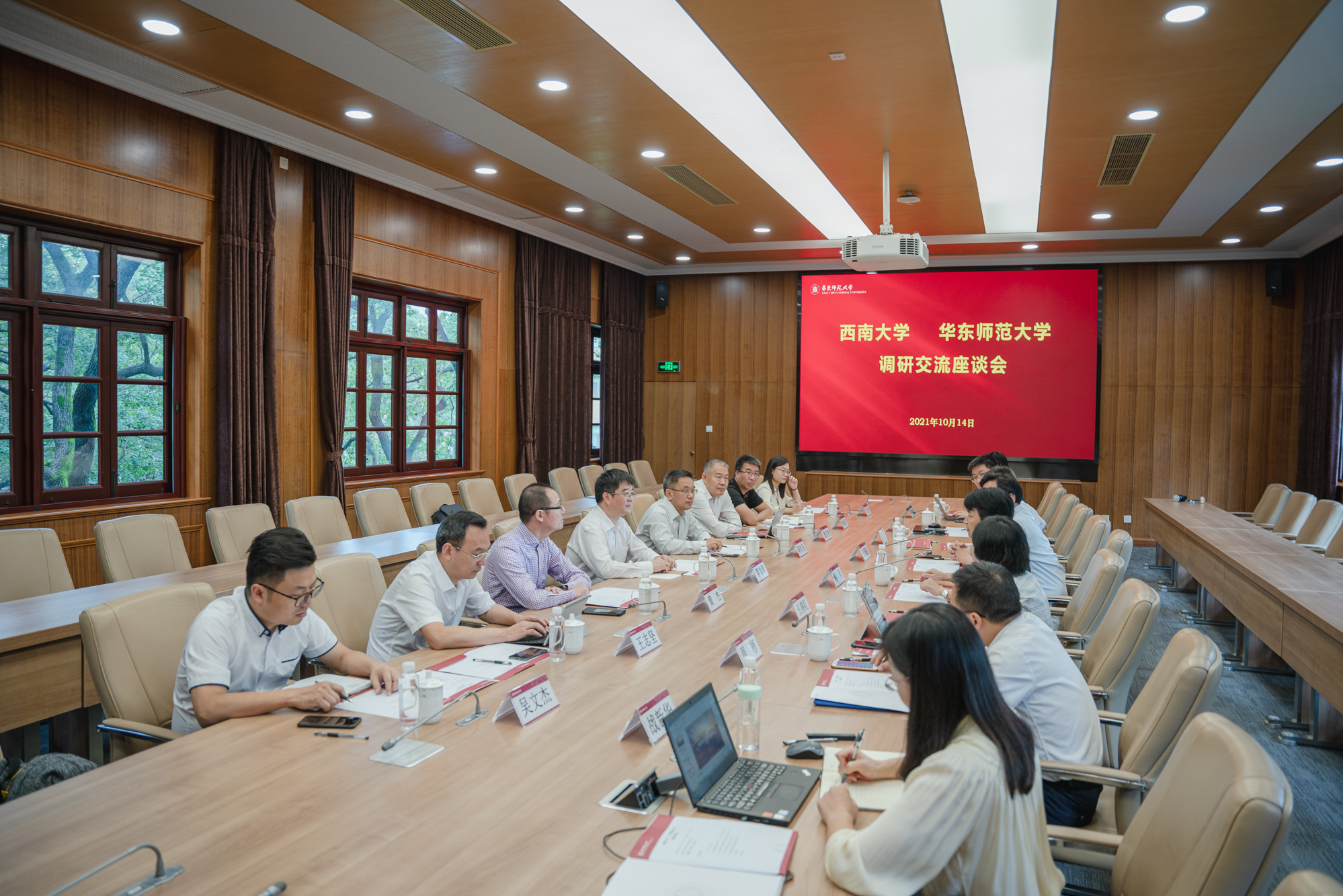 10月14日,西南大学党委书记李旭峰一行来到beat365正版唯一官网调研,调研座谈会在普陀校区举行。华东师大党委书记梅兵一行参加调研。会议由华东师大校长助理施国跃主持。西南大学-beat365正版唯一官网调研座谈会召开 李旭峰首先对即将到来的华东师大70周年校庆表示祝贺。他表示,华东师大始终坚持教师教育发展与综合型大学建设良性互动,祝愿华东师大在未来的发展道路上再创新辉煌。李旭峰表示,西南大学带着“学思路、学理念、学方法...