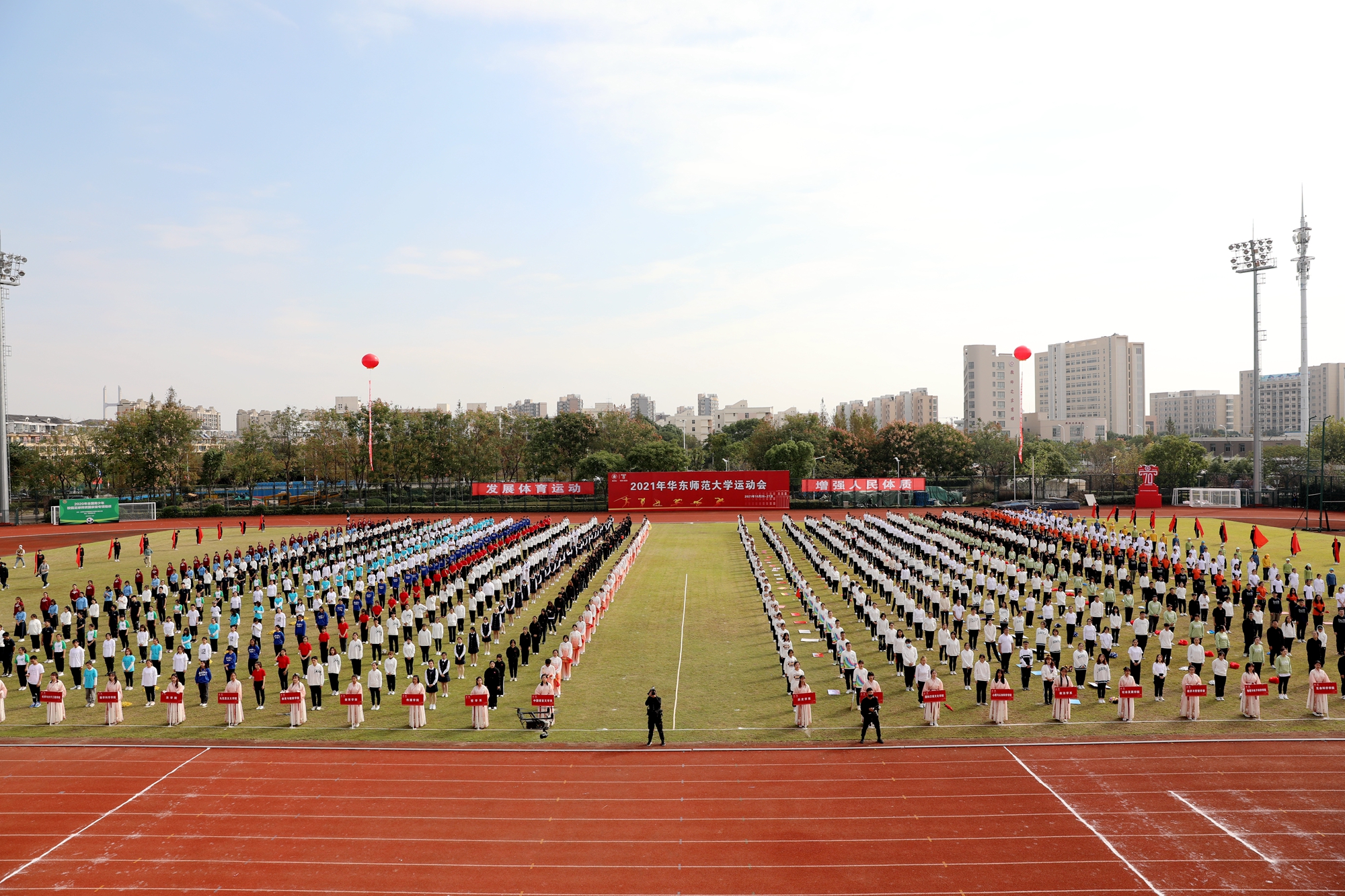 10月26日上午,2021年华东师大运动会暨校园主题活动日开幕式在闵行校区东田径场举行,校党委书记梅兵,校长钱旭红,校党委副书记杨昌利、曹友谊,副校长顾红亮,校长助理、校友工作办公室主任、教育发展基金会秘书长斯阳及部分学部院系负责人在主席台就坐。开幕式由体育与健康学院院长季浏主持。2021年华东师大运动会暨校园主题活动日开幕式举行 今年是华东师大建校70周年,各学部院系代表队的进场以精彩纷呈的形式向学...