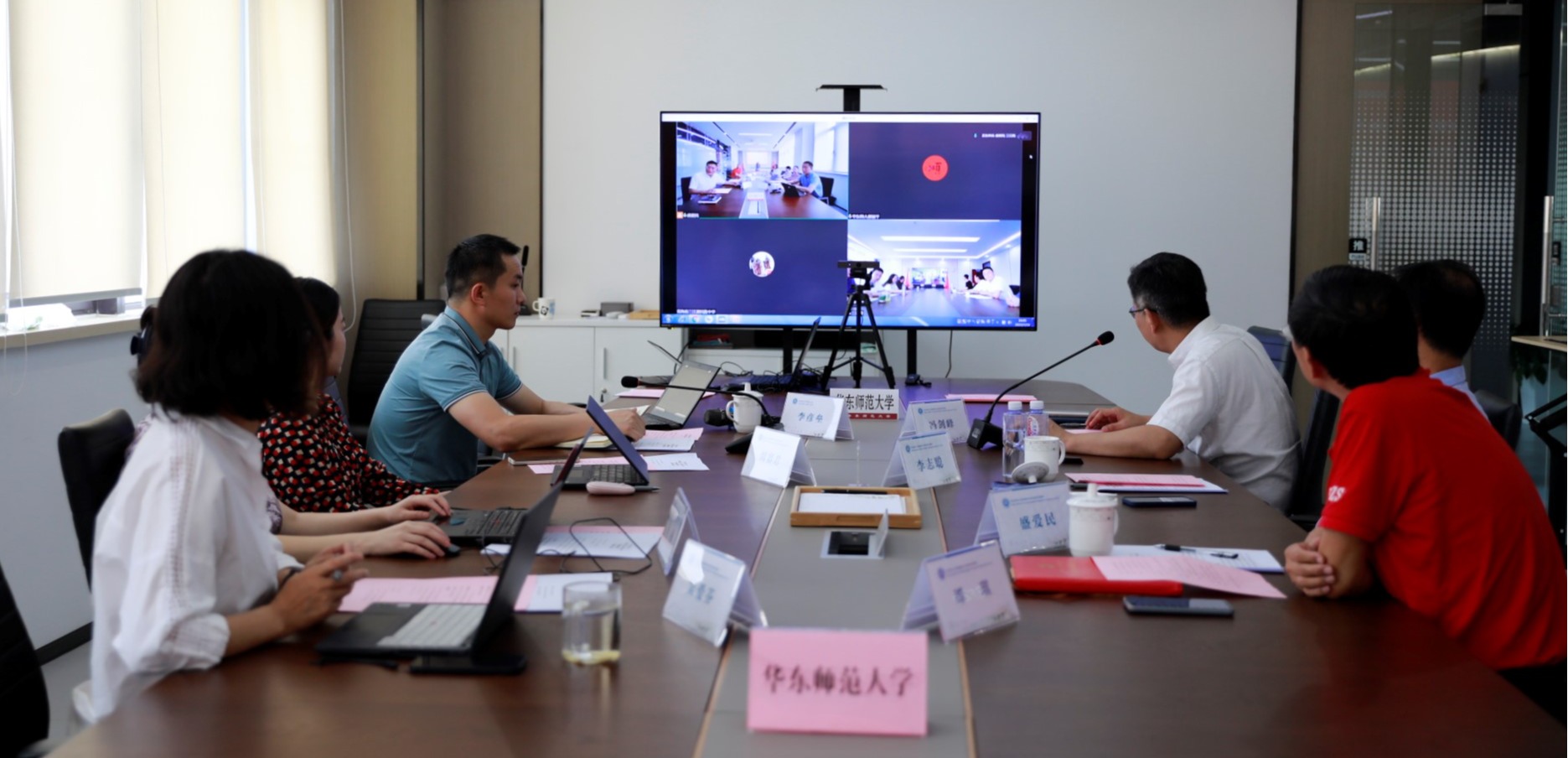 7月19日,浦南医院党委书记雷撼,副院长王乃玲,医务部部长、普外科主任叶敏,科教部科研办副主任王亚婷,肾内科主任漆映辉,神经外科主任赵江等一行访问华东师大,就院校合作与医学与健康研究院开展交流座谈。医学与健康研究院名誉院长管又飞,副院长、医学院筹建办副主任徐敏华,汪南平教授、张晓燕教授等参加座谈。会议以线上和线下结合的方式进行,管又飞主持会议。浦南医院党委书记雷撼一行到访华东师大 管又飞对浦...