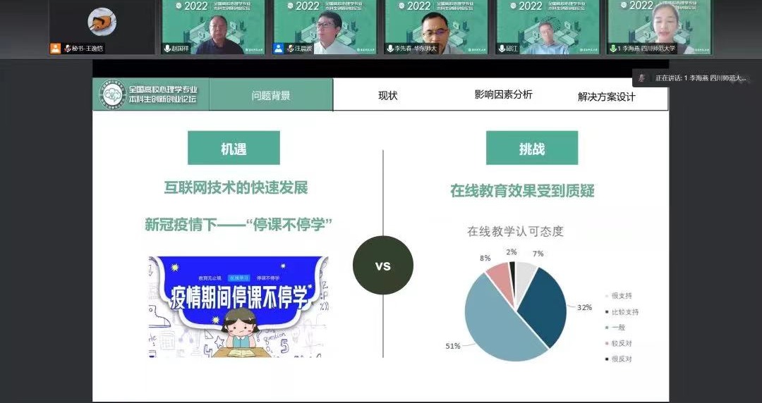 8月26日,由教育部高等学校心理学类专业教学指导委员会主办,华东师大心理与认知科学学院、心理学拔尖学生培养模式改革虚拟教研室共同承办的“全国高校心理学专业本科生创新创业论坛现场展示”在线举行,并通过Fistar脑科学、心仪脑两个平台进行全程直播。此次论坛下设“心理学实验设计”“现实问题解决”“心理学产品设计”三个分论坛。来自全国28所高校的36件本科生创新创业成果进行了展示。 自2021年11月3日发布通知...