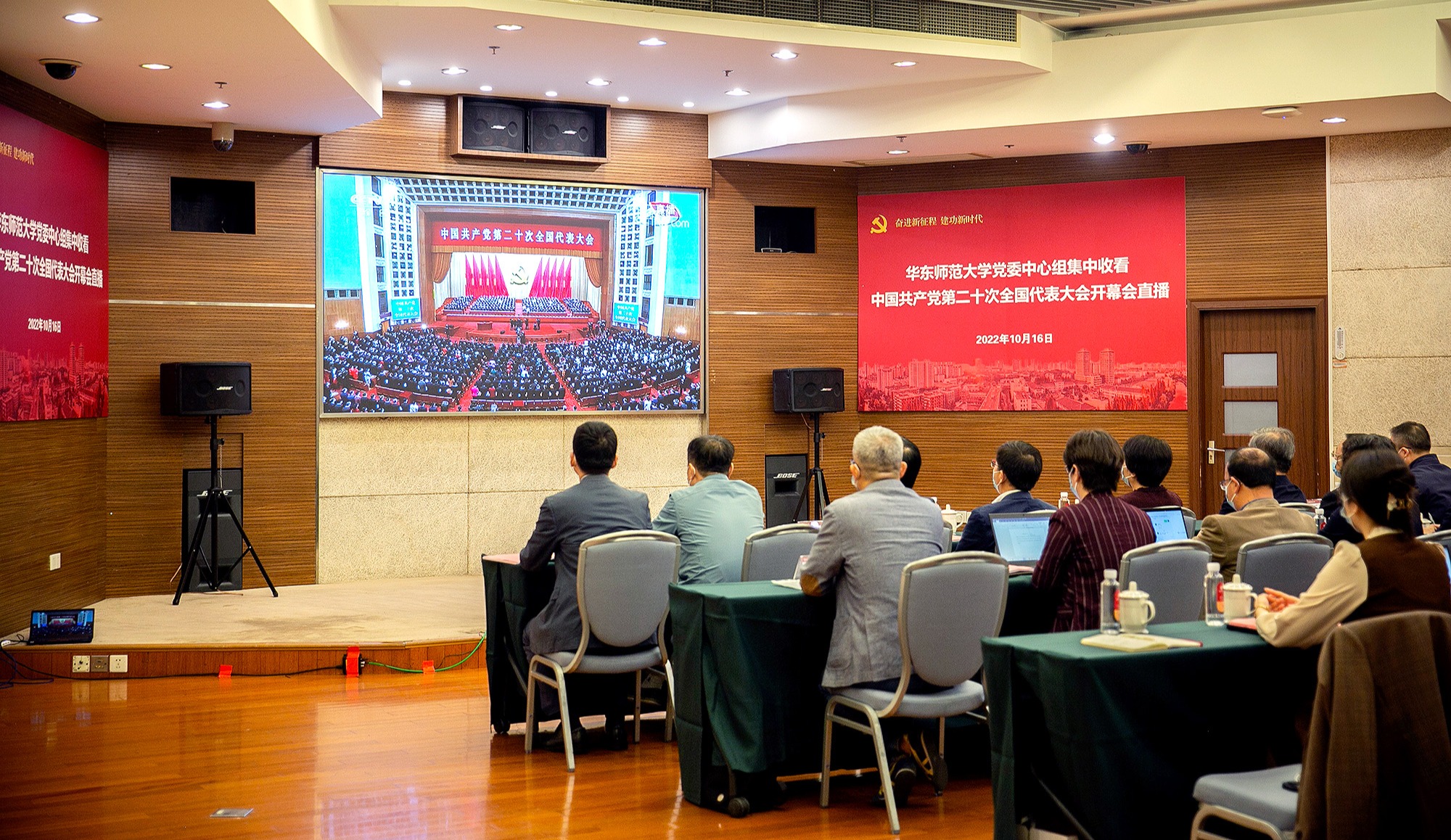 秋高云阔。今天上午,备受瞩目的中国共产党第二十次全国代表大会在人民大会堂开幕,习近平总书记代表第十九届中央委员会向大会作报告。今天恰逢beat365正版唯一官网建校71周年的校庆日。对华东师大全体师生而言,这个校庆日,无疑是令人振奋、意义非凡的,是双重喜悦,更是双重激励。 华东师大两校区红旗招展,“热烈庆祝党的二十大胜利召开”的展板分外鲜明,上午10点不到,师生们早早来到屏幕前收看开幕会盛况。华东师大师生...